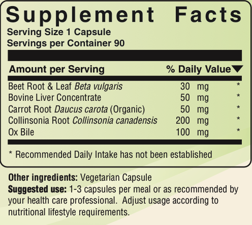 Products containing ox bile, collinsonia, carrots, bovine liver, beet