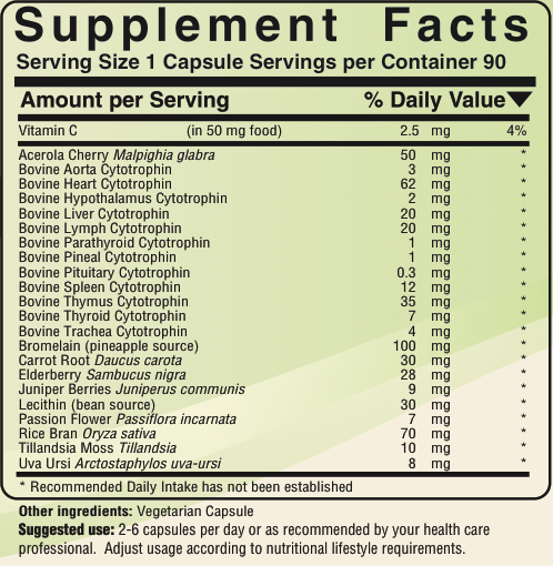 bovine glandulars, bromelain, vitamin C, B vitamins, and lecithin as